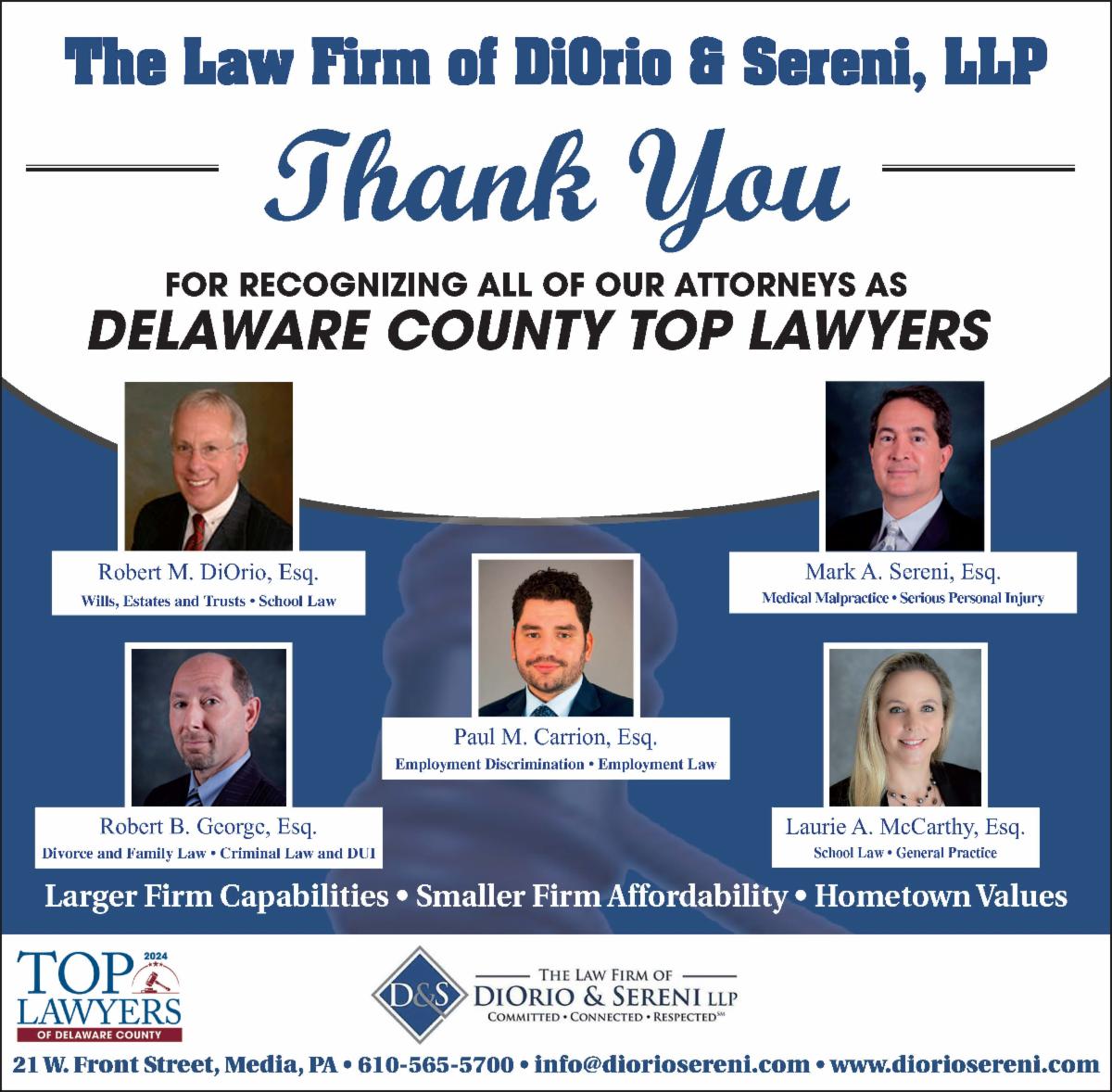 Lauded by the Delaware County Daily Times for his "great intelligence, skill, courage and - most importantly - integrity."