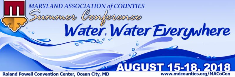 MACo's 2018 Summer Conference will focus on all the ways counties work with water. From the health of the Bay and Maryland's waterways to the infrastructure, treatment, and regulations that ensure safe and healthy water flows through our pipes, county governments are keeping our residents afloat. Conference sessions will discuss the Bay, water infrastructure, watermen and oyster/fishery/habitat issues, floods and other natural disasters, and ways to put the wind back in the sails of a tight budget.