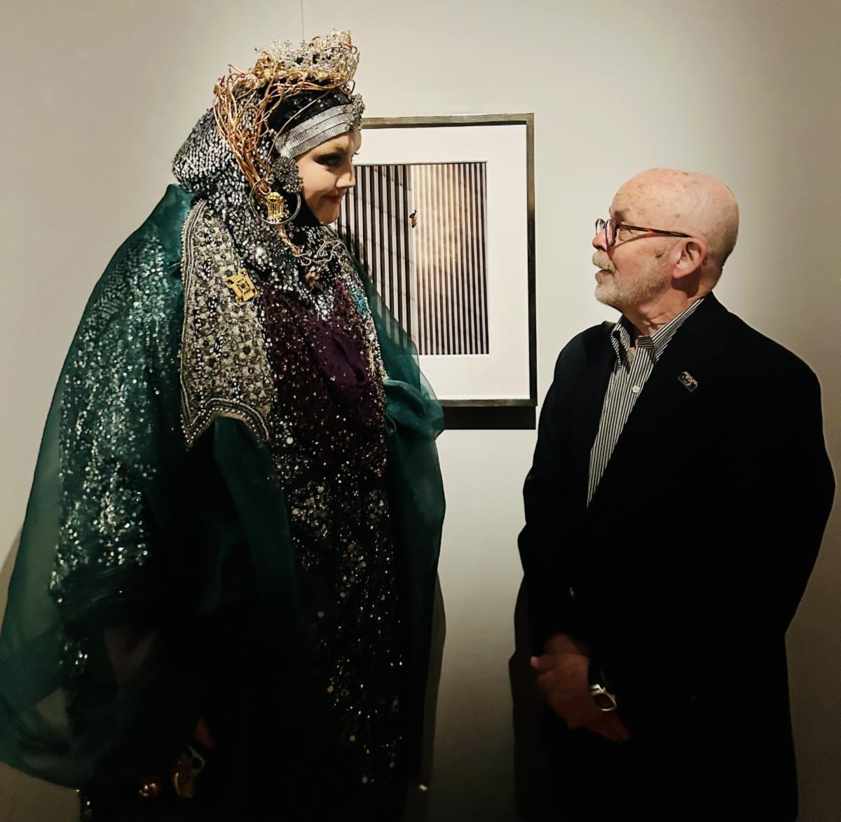 GIFT OF FATE PART II: Sir Elton speaks to the throng, and of the 300 photos, mentions only The Falling Man, saying it is the favorite of his 7,000 acquisitions, and that he chose the title of the exhibition, "Fragile Beauty," from the feeling it evokes in him. Richard yells from the crowd, "I'm here!" and the organizers pull him onto the stage where Sir Elton says, "Thank you, Sir, thank you!" and gives him a long bear hug.