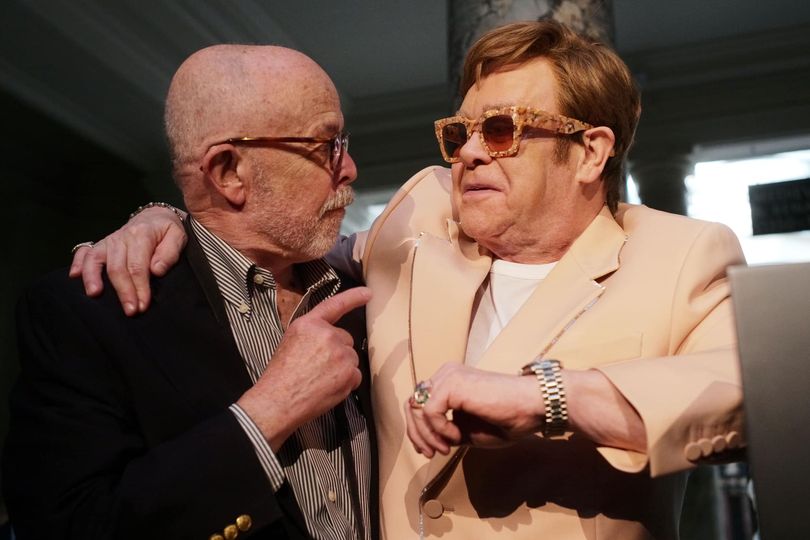 Molly Gordy described this photo of her husband Richard Drew and Elton John as “two 77-year-old with bad knees, shmoozing.” Photo by Burhan Ozbilici/AP