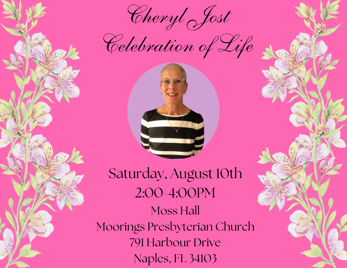 This is in loving memory of our dear friend Cheryl Jost of Ryan David Homes. Chery was a beloved member of our community who passed away on Sunday, June 30th, 2024.