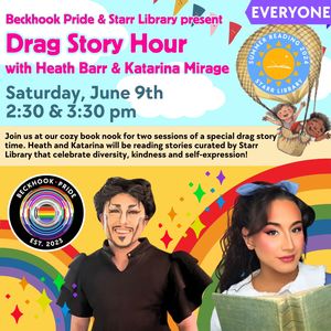 Drag Story Hour with Heath Bar and Katarina Mirage. Two sessions with stories curated by Starr Library that celebrate diversity, kindness, and self-expression. At the cozy book nook at BeckHook Pride, Church of the Messiah, 6436 Montgomery St. (Rte. 9), Rhinebeck.