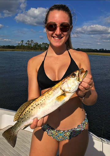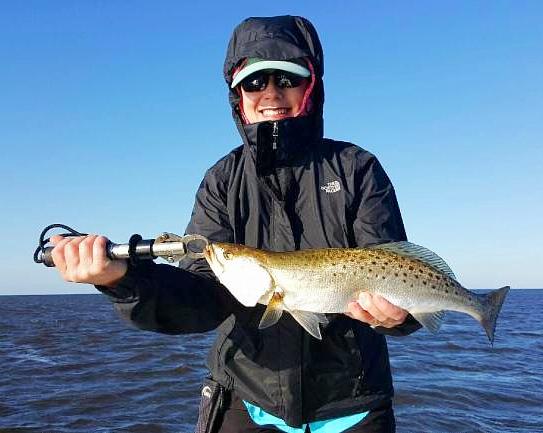 Cindy (in the middle) had a fantastic time fishing with Doug and Steve Graham. This group caught redfish, trout, and flounder.