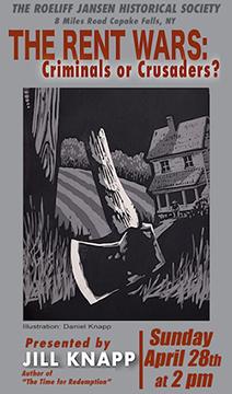 The Roeliff Jansen Historical Society will host an illustrated talk by Jill Knapp on the “rent war” of the mid-1800s on Sunday, April 28 from 2-4pm.