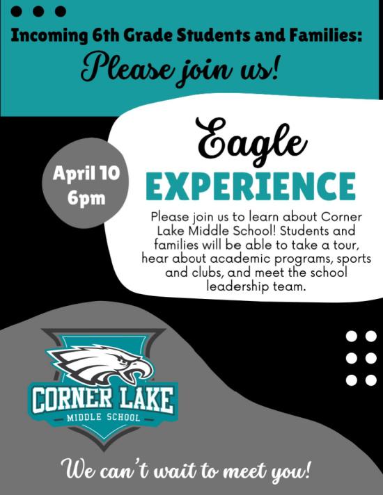 • Eagle Experience 6th Grade Night (this for current 5th graders that will attend CLMS 24-25 school year)