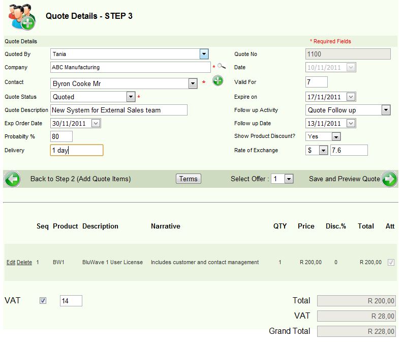 BluWave CRM Feature: Quotes Automation