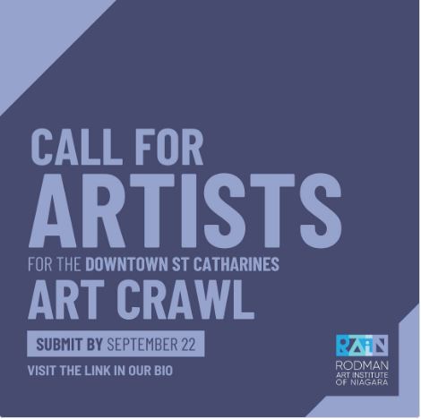 RAiN is calling for submissions from artists interested in taking part in a one day installation as a part of a Downtown St. Catharines Art Crawl taking place during Ontario Culture Days on Oct. 11, 2024 from 5 p.m. to 11 p.m. We’re looking for submissions of original art to be displayed throughout Downtown St. Catharines, all artists selected will be paid an honorarium.
