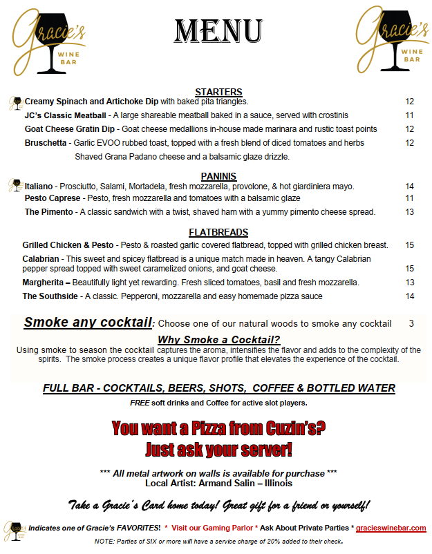 GRACIE'S - Wine. Cocktails, Beer & Gaming Salon