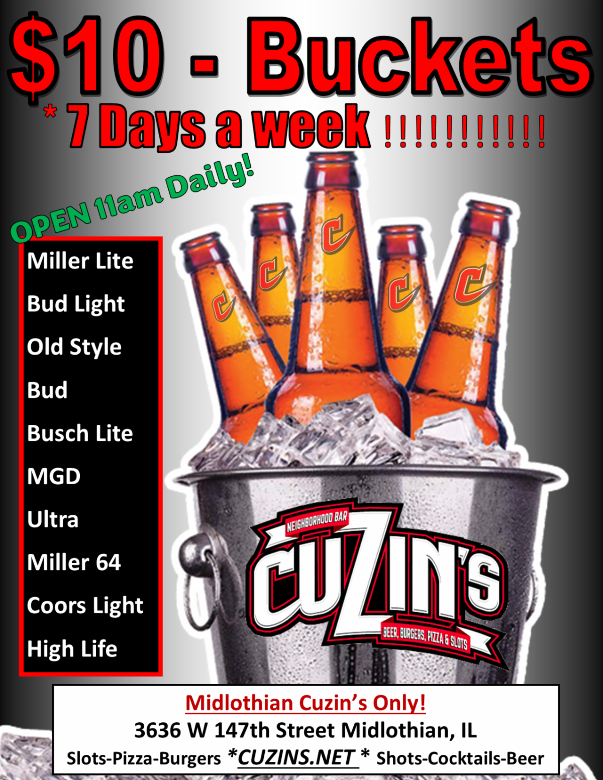 $10 Buckets of beer!