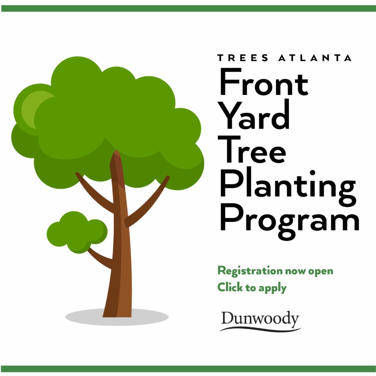 For the second year, the City of Dunwoody is partnering with Trees Atlanta to plant up to 80 shade trees in front yards across Dunwoody. Registration is open. Trees will be allotted on a first-come, first-served basis.