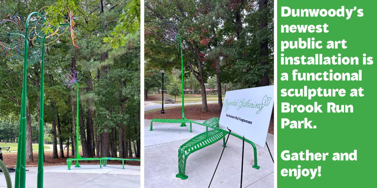The new Grounded Gathering sculpture has been unveiled at Brook Run Park. The sister sculpture to Grounded Growth, Grounded Gathering features a 15-foot large-scale artistic flower and leaf benches for friends and family to gather in the park.