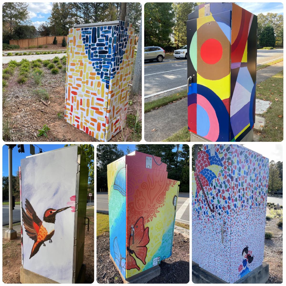 Phase III of the City’s popular Green Light Art project is complete with new designs installed on five traffic signal boxes. Unveiled last year, the public art display now features 15 original canvases that were digitized, printed, and wrapped onto the boxes. Phase III features the work of Dunwoody High School students, who created their designs for Dunwoody’s Storefront Art project. The City of Dunwoody plans additional wraps in the future.