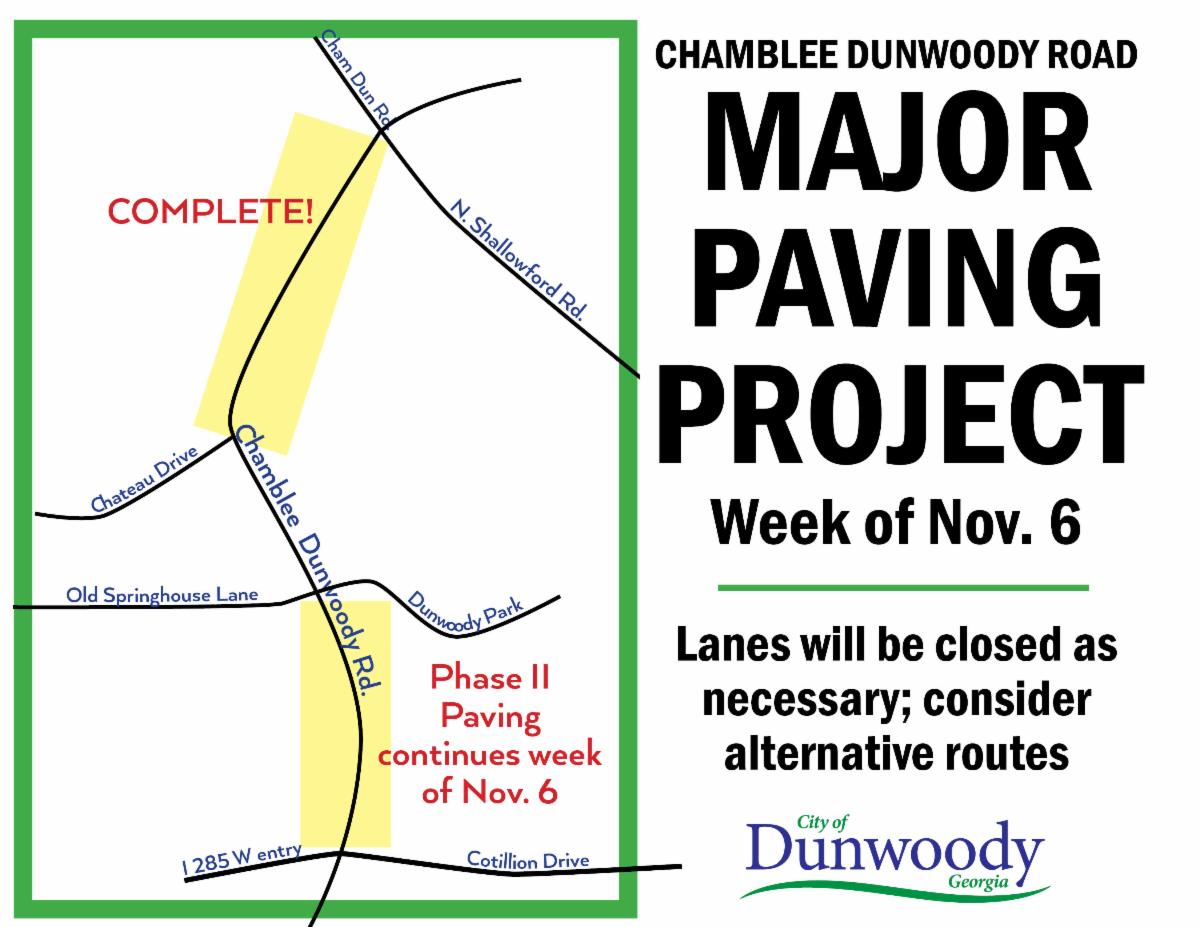 Additional paving will continue into next week (11/6) for the second section, between Cotillion Dr. and Dunwoody Park on Chamblee Dunwoody Rd.