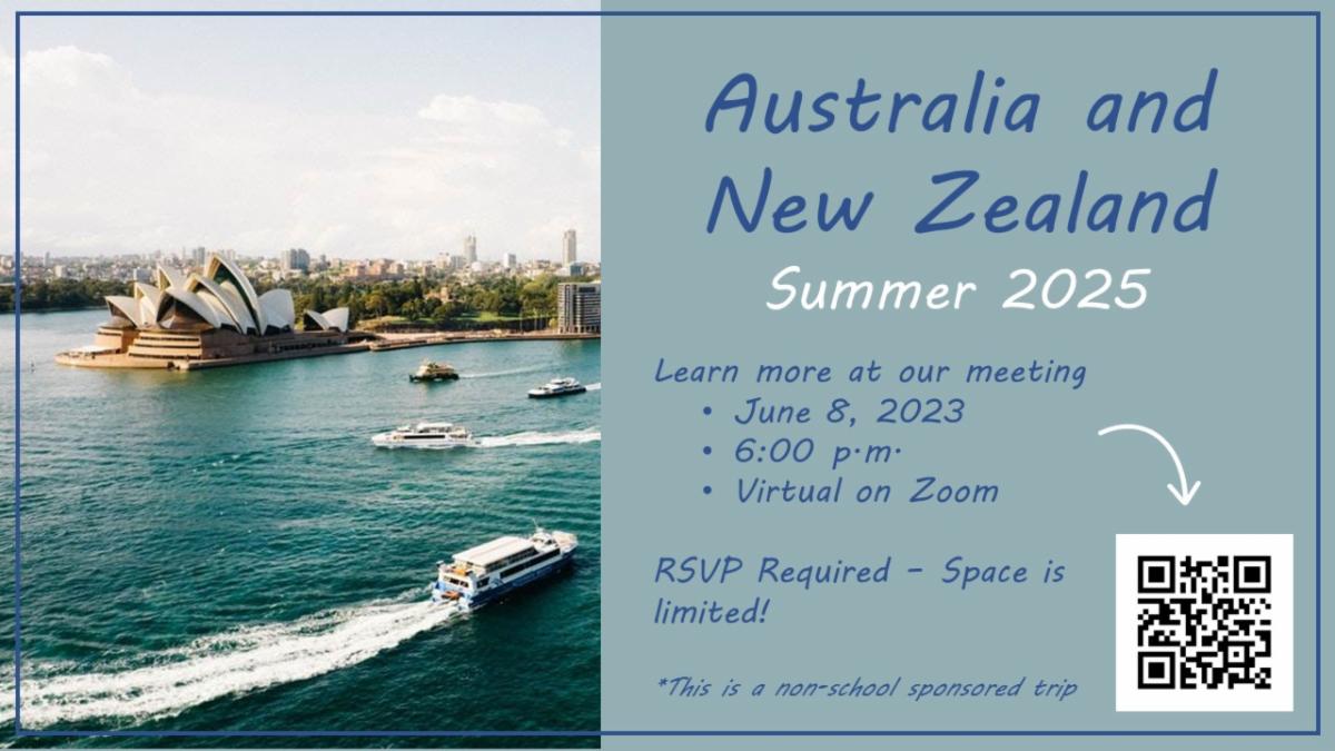 Australia and New Zealand Trip Opportunity - Summer 2025