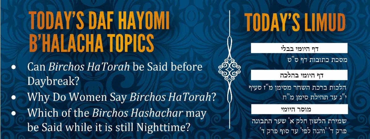 All of the Birchos Hashachar may be recited before daybreak, except for Hanosein Lasechvi Binah. If one did recite this brocha, he is yotzei b’dieved. If a person heard the crow of a rooster, many Achronim hold that he may even say the brocha l’chatchilah. If one plans to go back to sleep, he should not say the brochos of Elokai Neshama and Hama’avir Sheinah. The parshios of korbonos should not be said before daybreak either, since korbonos were only brought after alos hashachar.