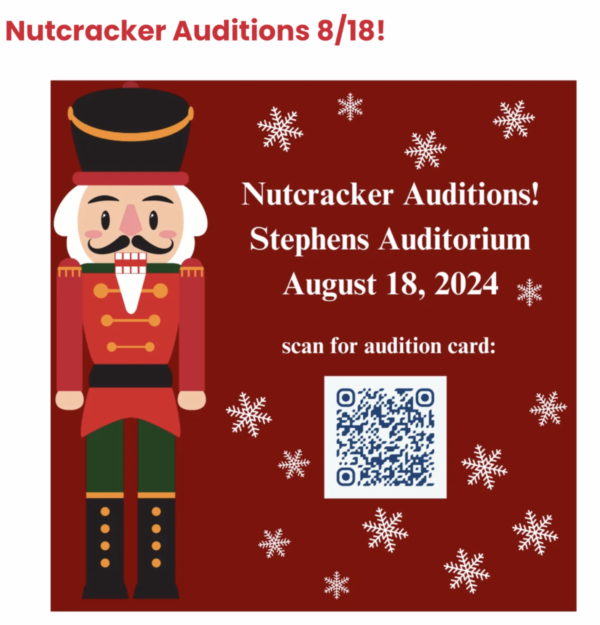 Nutcracker Auditions Sunday Aug 18 Noon @ Stephens