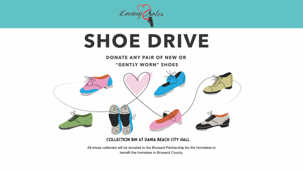 Shoe collection bins are located at Dania Beach City Hall. Through March 29, donate new or gently worn shoes for the Broward Partnership for the Homeless to benefit the homeless in Broward County.