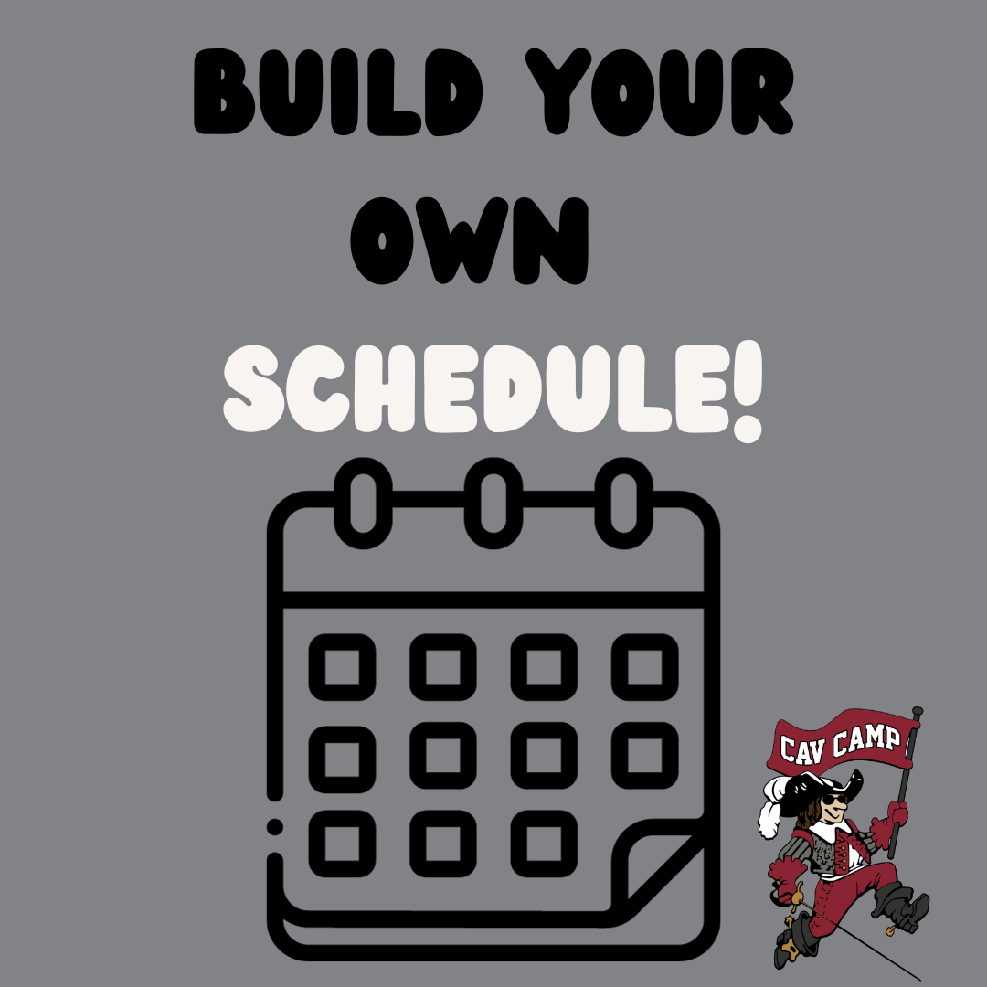 At Cav Camp, your camper will be able to build their own camp day! We offer 3 activity periods per day and campers will always have at least 5 activities from which to choose. These will always include Art, Sports, STEM, and at least 2 other activities such as cooking, arts and crafts, and more!