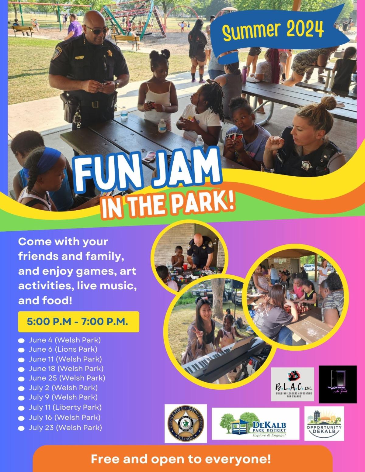 Exciting news! This summer, DeKalb has something special in store for kids on Tuesdays and Thursdays. Join us for Fun Jam in the Park, where there will be an array of activities including board games, arts and crafts, sports, and much more!