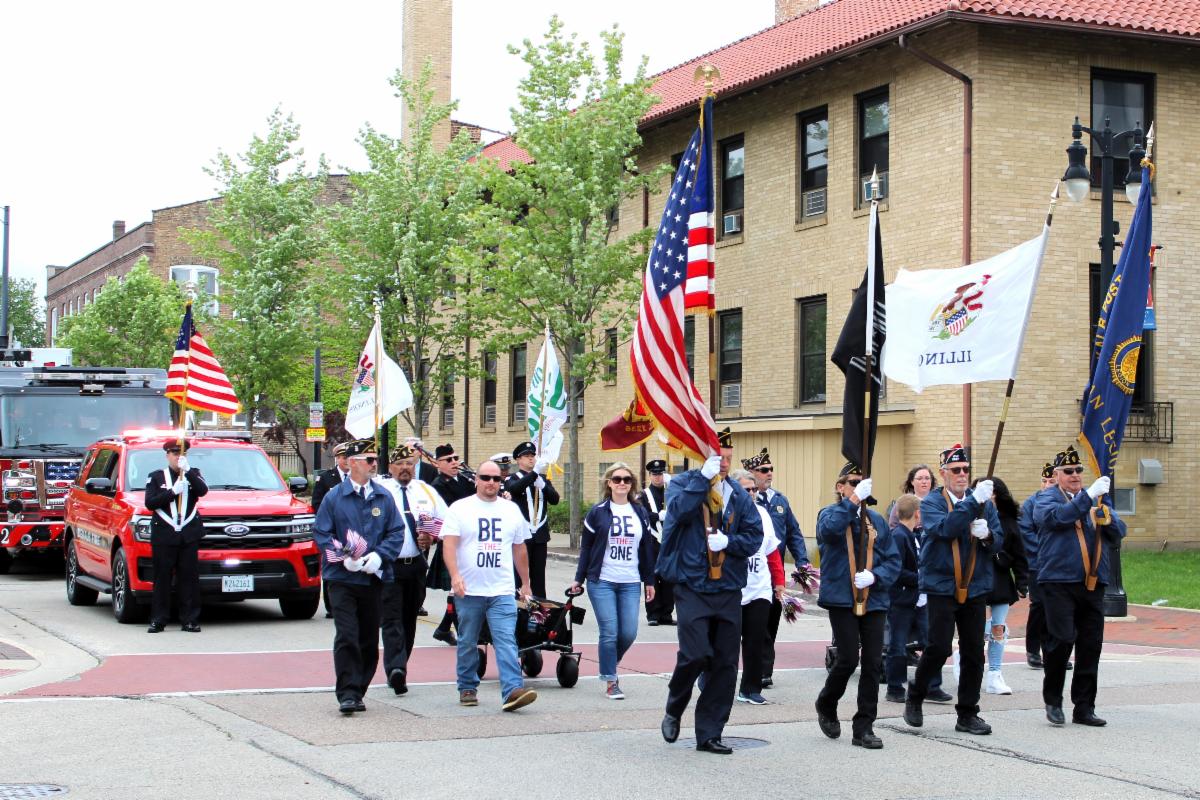 The DeKalb American Legion Post and Auxiliary marched down East Locust Street in the Memorial Day parade followed by the DeKalb Fire Department. | |