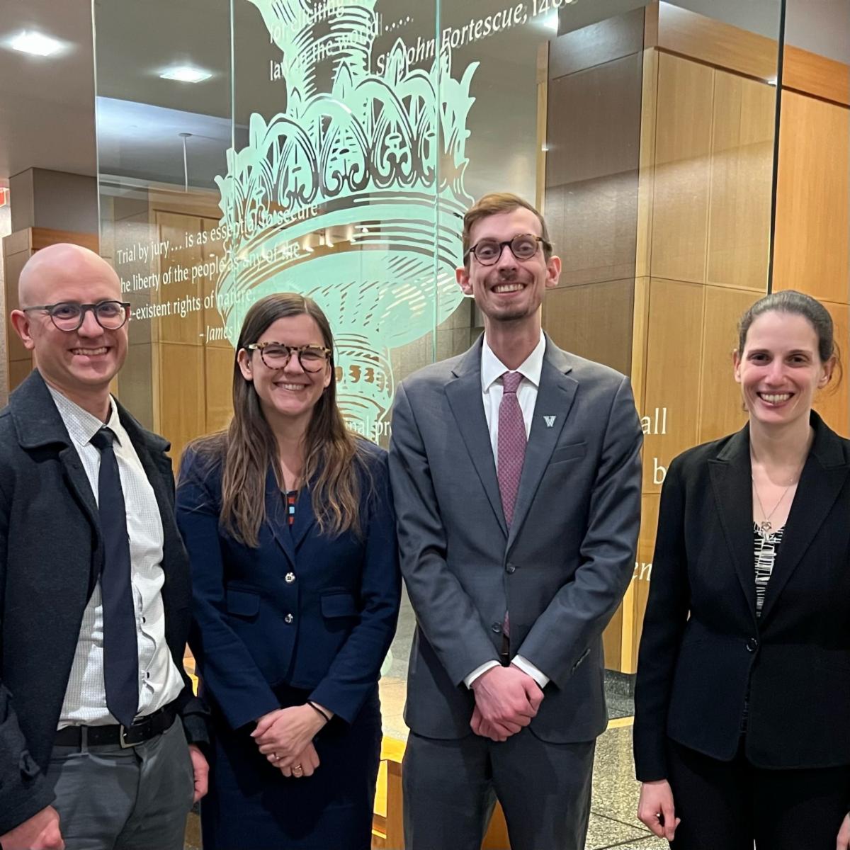 From left: Eric Tars, Senior Policy Director for the National Homelessness Law Center; Erica Briant, LASP Director of Community Engagement & Training; Charles Burrows, Staff Attorney; and Marielle Macher, Exeutive Director, Community Justice Project. | |