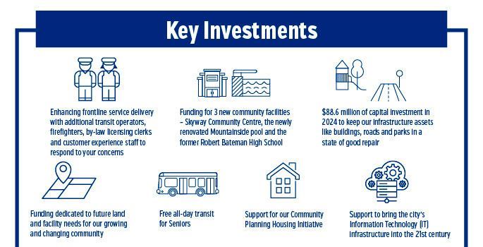 - Funding for 3 new community facilities – Skyway Community Centre, the newly renovated Mountainside pool and the former Robert Bateman High School