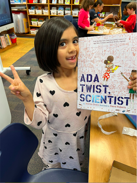 The program includes a maze creation activity for younger children and a bridge building activity for older elementary students. After that, each child is able to choose a take-home-forever book that focuses on science, technology, engineering, the arts, and math. Yay!!!