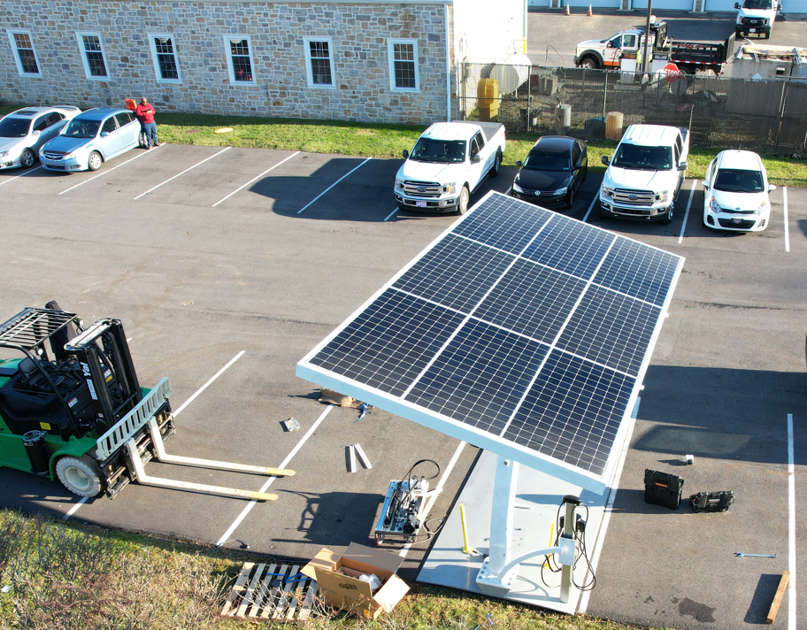 A solar-powered electric vehicle charging station that provides two chargers for electric vehicles was installed last Friday at the Township Building complex and is currently operational.