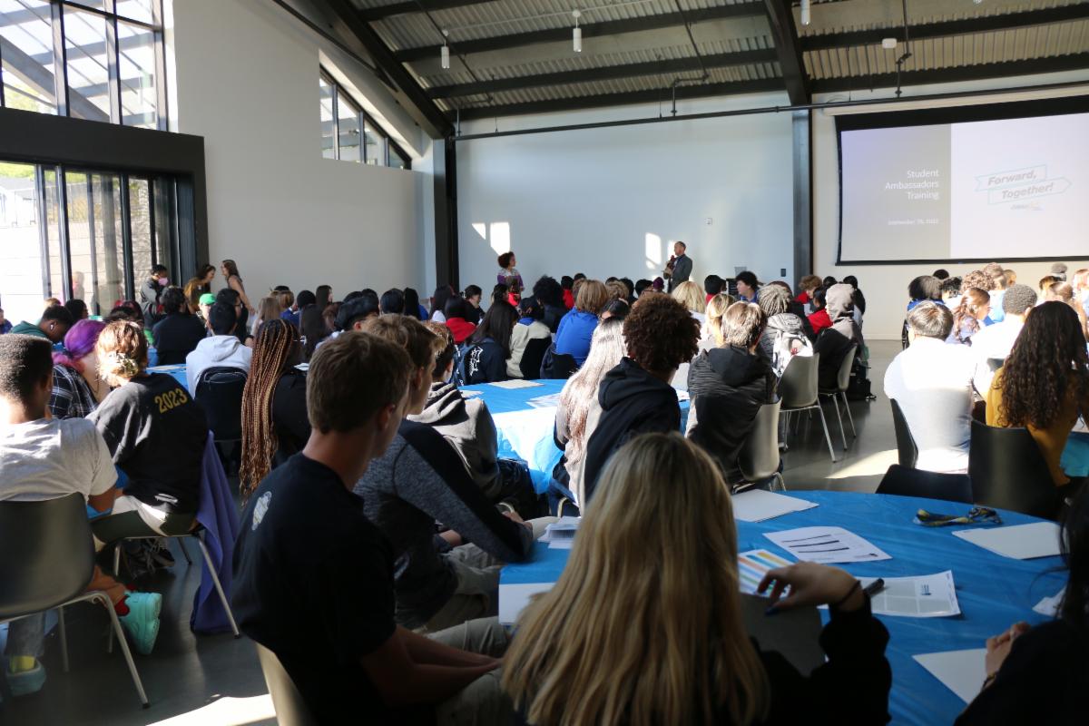 El personal de las Escuelas Públicas de Omaha presentó información a los estudiantes embajadores sobre las academias universitarias y profesionales. También discutieron formas en que los estudiantes y el personal podrían colaborar a medida que evoluciona la programación.