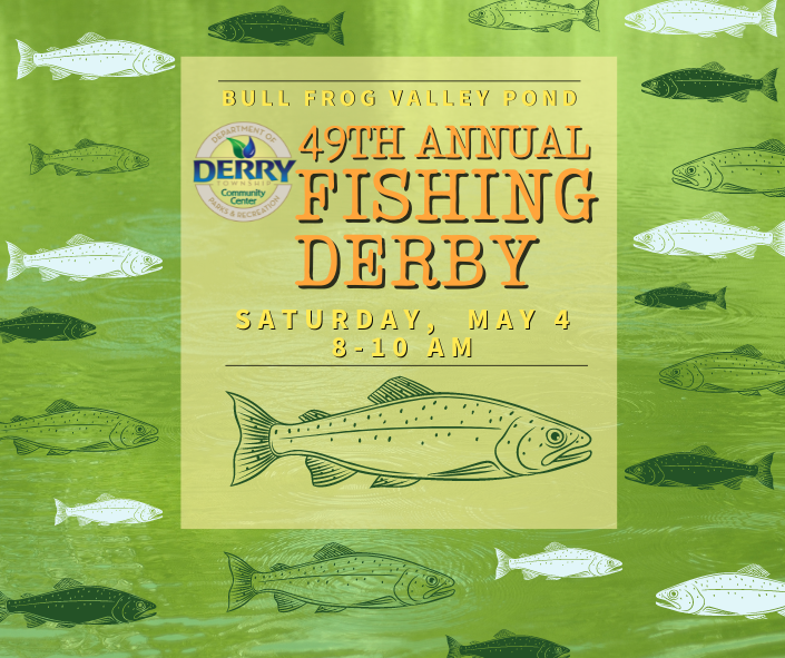 49th Annual Fishing Derby | Derry Township Parks & Recreation’s 49th Annual Fishing Derby will be held on Saturday, May 4th, from 8:00 am to 10:00 am at Bullfrog Valley Pond. Come out and take your shot at catching over 500 trout! This event is open to anglers up to 12 years old, and registration is not required. Check out our Facebook page for event details! | | |