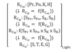 The matrix to the right is a depiction of the Light Equation central to COL. Organizationally, it suggests that there are different levels of inspiration that have different effective power in changing the mathematics of organization.