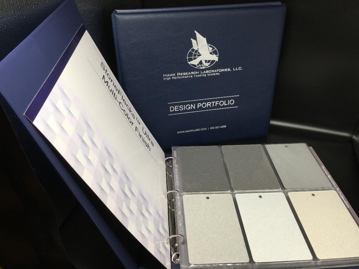 A complete CreteFx Design Portfolio, including the binder, a CreteFx Divider page, 29 sample panels, and 5 custom 6-pocket sleeves also available - $99.75.