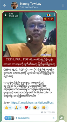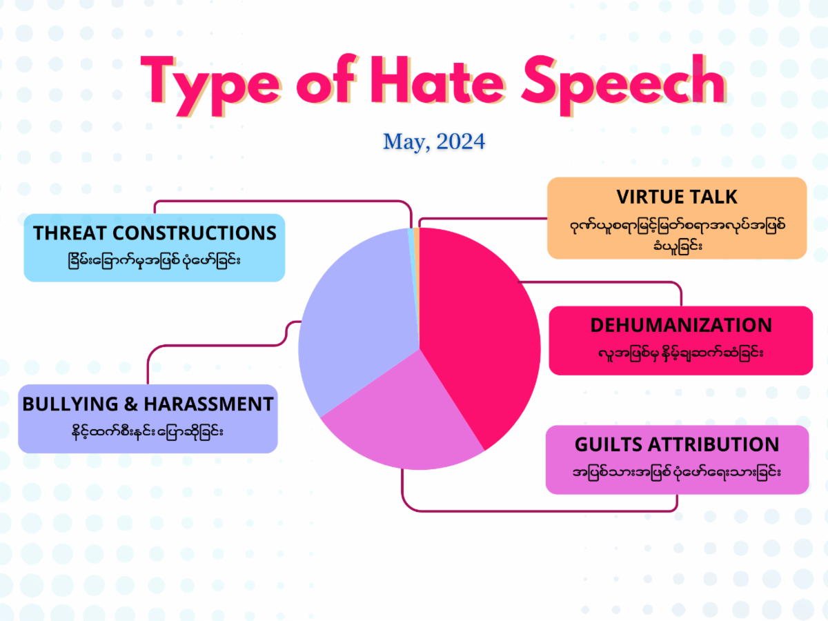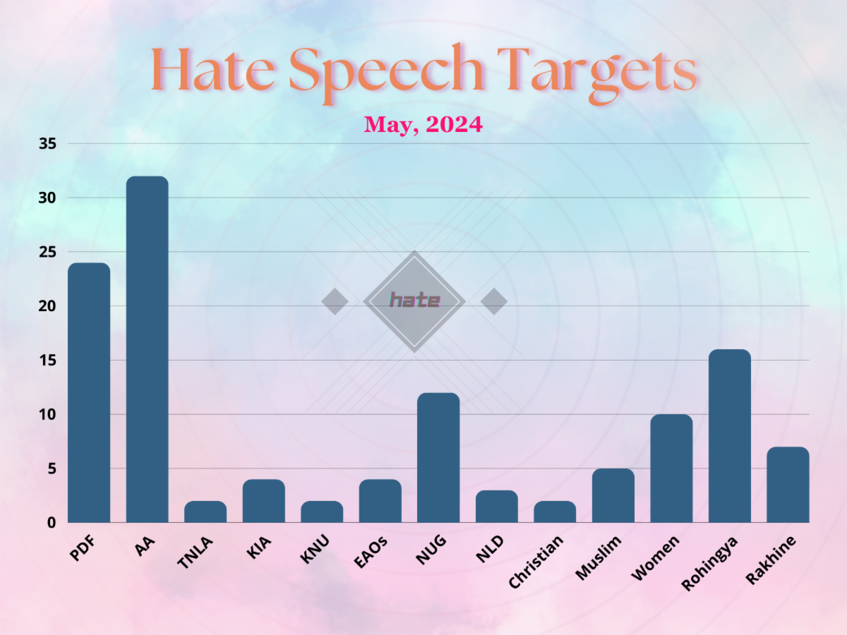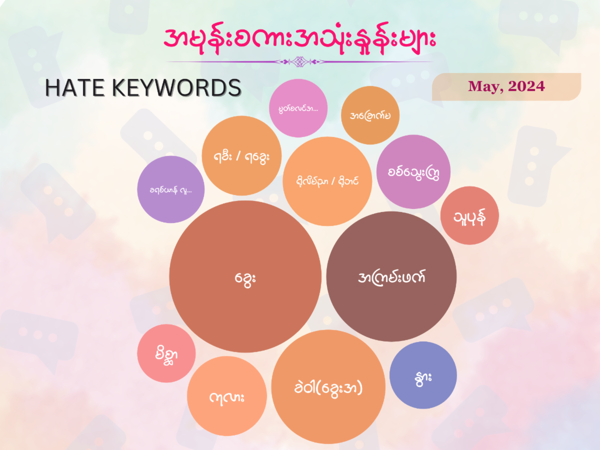 In this month's findings, it was found out that AA General Tun Myat Naing said abusive hate speech against Rohingya and Spring Revolution Monk said criminalizing hate speech by describing Rohingya as illegal migrants and non-citizens. Since then, the use of the term “illegal migrants” to refer to Rohingya, has been increased at the times Rohingya faces AA's abuse. In addition, it was found that some monks said the dehumanizing hate speech against PDFs. They portrayed NUG, CRPH and PDFs as subversives and traitors. Sexual abuse against women who are taking part in the revolution, was also found. While the statement "Rakhine people in Rakhine State have to worry about the danger of terrorist Muslim community" is being spread among Rakhine ethnic groups, the statement of the Human Rights Minister of the National Unity Government, U Aung Myo Min "the Rohingyas are being incited to become religious extremists and to commit violence against other religions" has worsened the tensions between the two ethnic groups on the ground.