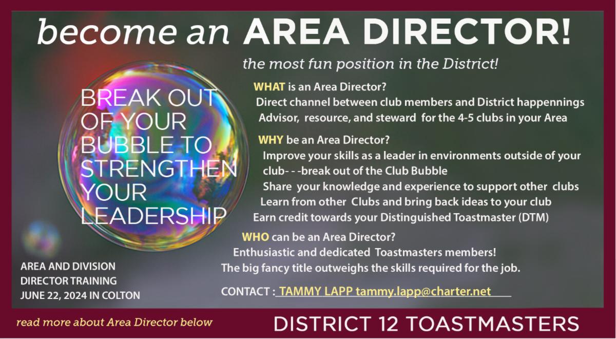 District 12 Toastmasters is on LinkedIn! Follow, Post and Share!!