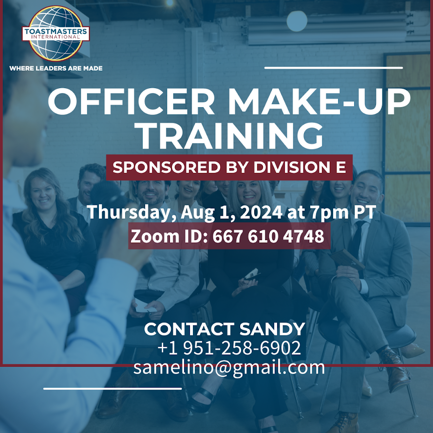 Make-up Training by Division E - Aug 1, 7:00 on Zoom