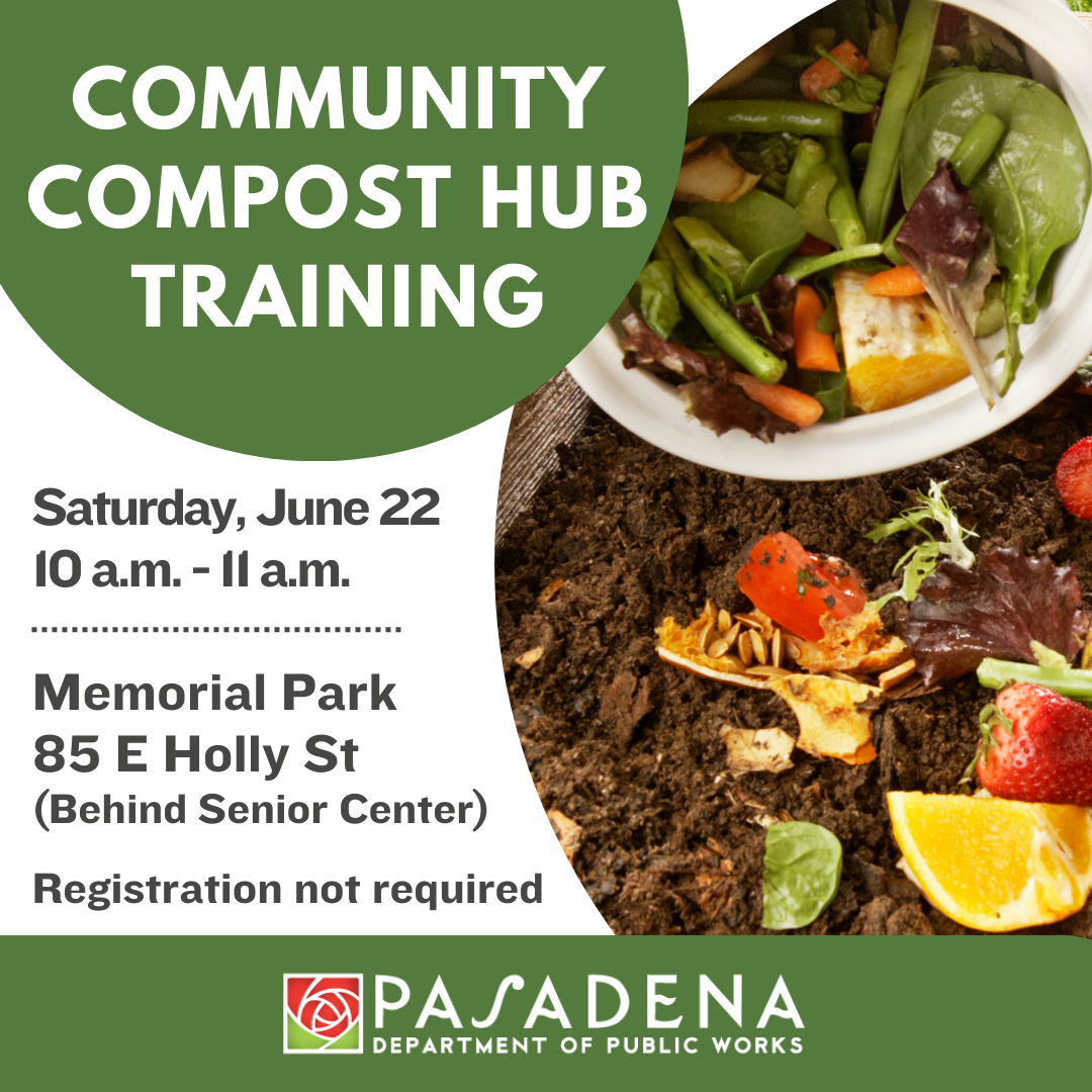 The Community Compost Hub Training will be held tomorrow, June 22nd at 10am at Memorial Park - 85 E. Holly Street (behind the Senior Center). Learn more about these compost hubs on the city website.