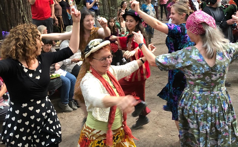 For example, do you like Latin music? Cora Hubbert will teach basic Salsa, and Salsa Rueda from Cuba, and that means you'll be up to speed for the big Latin Dance Party on the final night of Lark Camp. Do unusual Balkan rhythms fascinate you? Sue Williard and her assistants Jenette Sellin & Eliza Cantwell will help you understand them. (Pictured above left, Balkan Dance/above right, Galician; photos by Celia Ramsay)