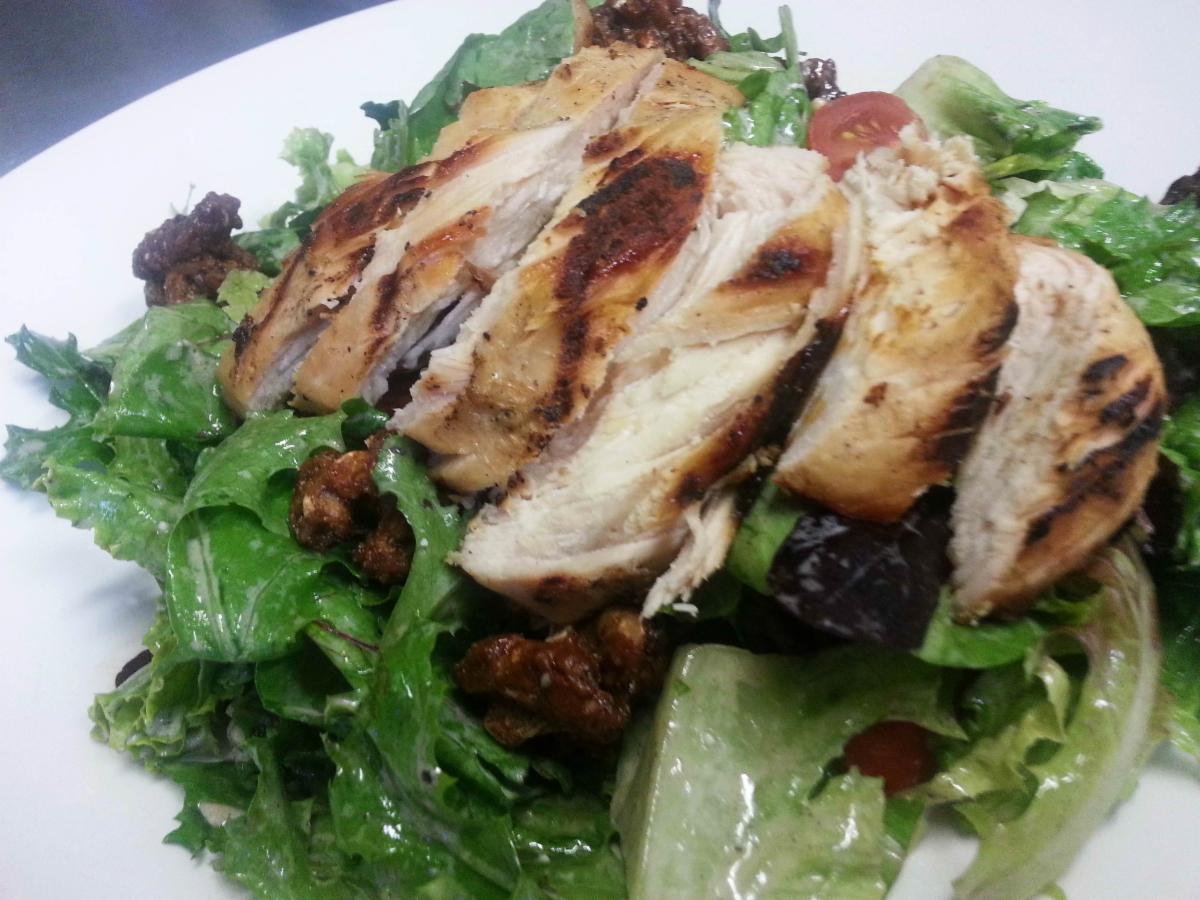mixed greens, walnuts, crumbled blue cheese, dried cranberries, grape tomatoes, creamy and vinaigrette dressings