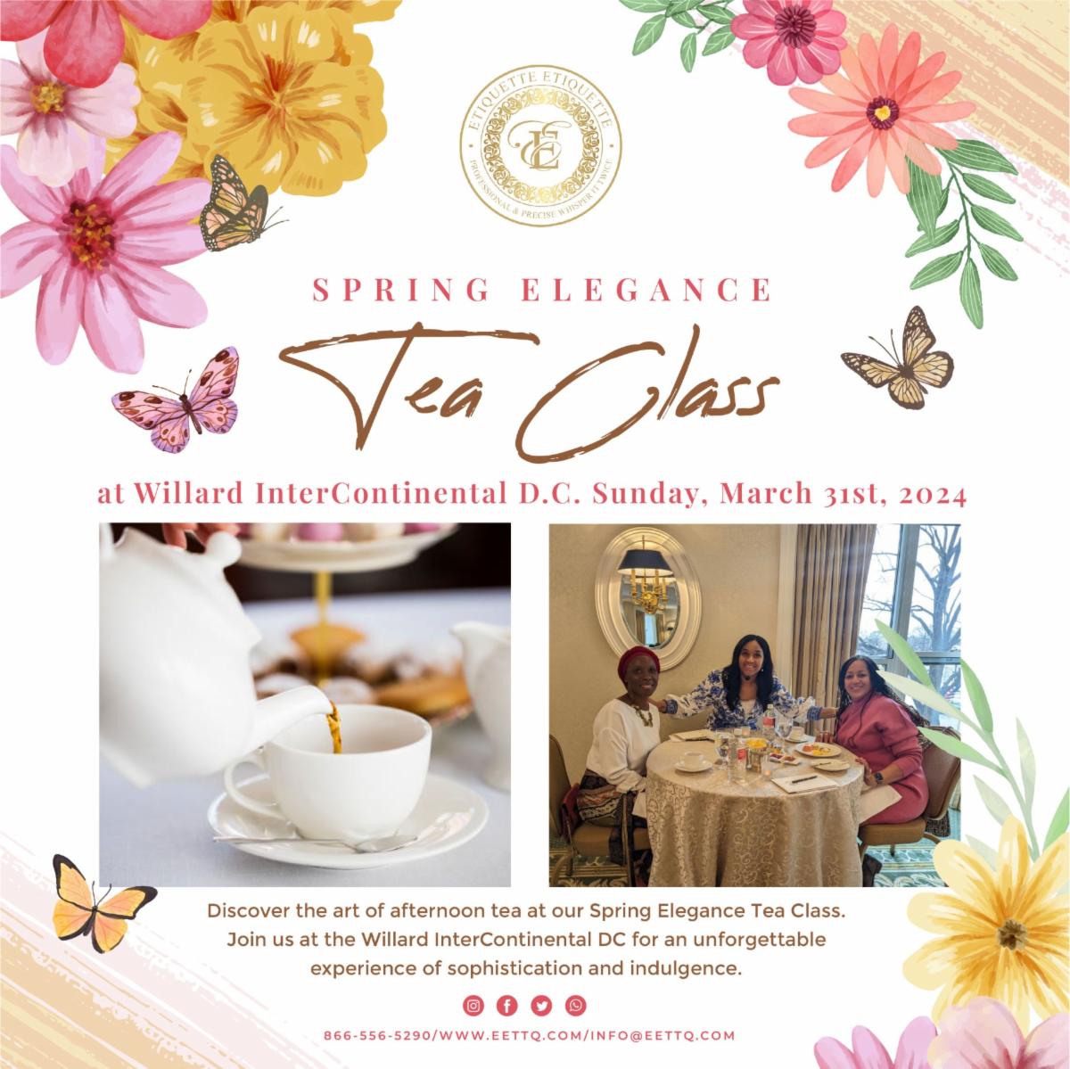 Discover the art of refinement this Easter Sunday at our exclusive Afternoon Tea Etiquette Class! Join us at the historic Willard Hotel in Washington, DC, for an unforgettable experience in sophistication and charm.☕