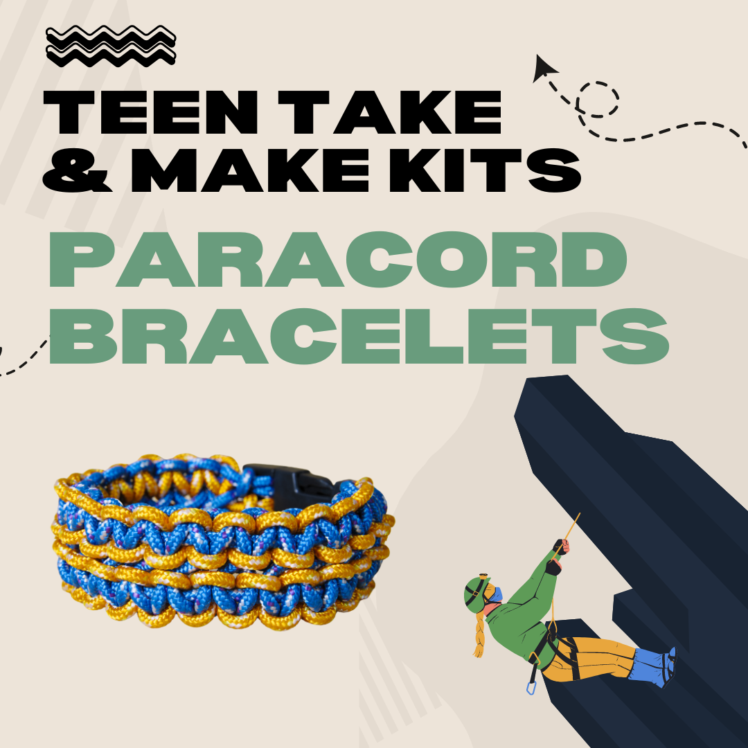 Teens entering grades 6-12 are welcome to bring home a Take & Make Kit filled with supplies to make a paracord bracelet. Kits will be available beginning June 24, and can be picked up in the Teen Loft (one per teen, please) while supplies last! | |