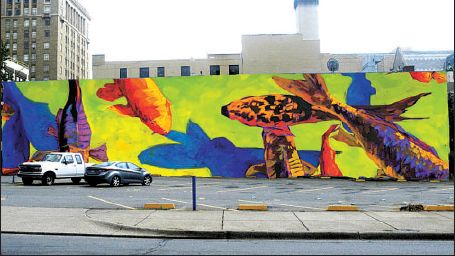 Photo above, left to right: Koi on Main? Little Rock artist Matt McLeod announced this week that he will be painting a mural, rendition above, on the wall of the building occupied by Bennett's Military Supplies at 608 Main Street. The colorful koi fish mural production is sponsored by an ArtPlace America grant received by the City of Little Rock. McLeod is scheduled to open his gallery across the street in the Arkansas Building in March. McLeod hopes to have the mural completed by May.