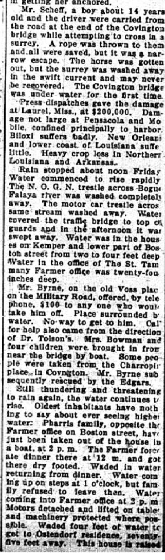 Side note: Ditches drain into tributaries: Rattle Snake, Patricia Canal, Blue Swamp Creek, Mile Branch, Simpson Creek, St. Paul's Creek, Mackie Creek. These tributaries flow into the Tchefuncte and Bogue Falaya Rivers. When the river is full, the tributaries will hold the same level as the river (and therefore not flow or flow slowly). When the tributaries are full, lateral ditches (and your yards) will not flow. For example, the streets of River Forest will not drain until the level of Patricia Canal has dropped below the level of River Forest's culvert outfalls.