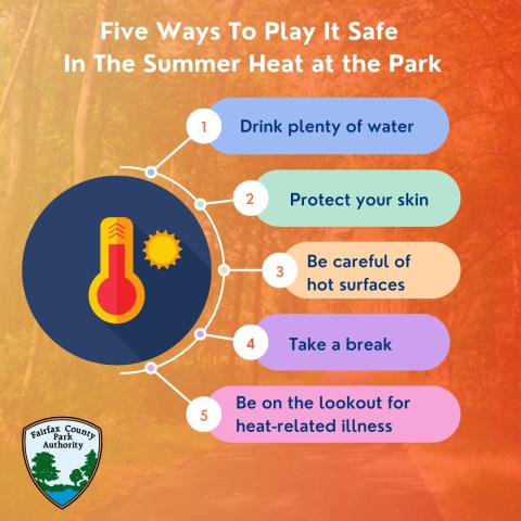 Summer is heating up! The Fairfax County Park Authority is encouraging individuals to play it safe when they visit their parks and have provided residents ways that they can beat the heat and have some fun at the same time.