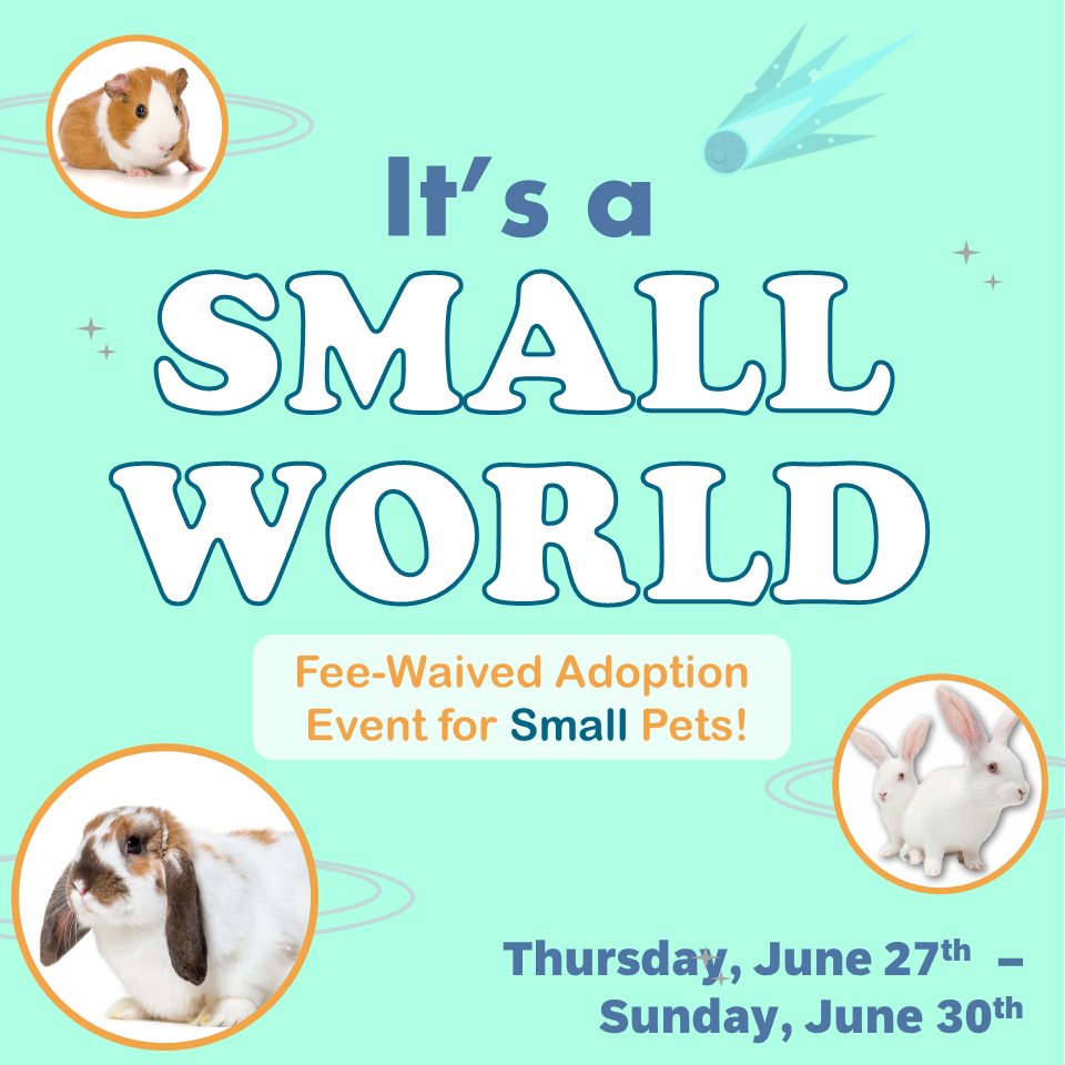 - Today through June 30: Adoption Fees Waved for Small Pets