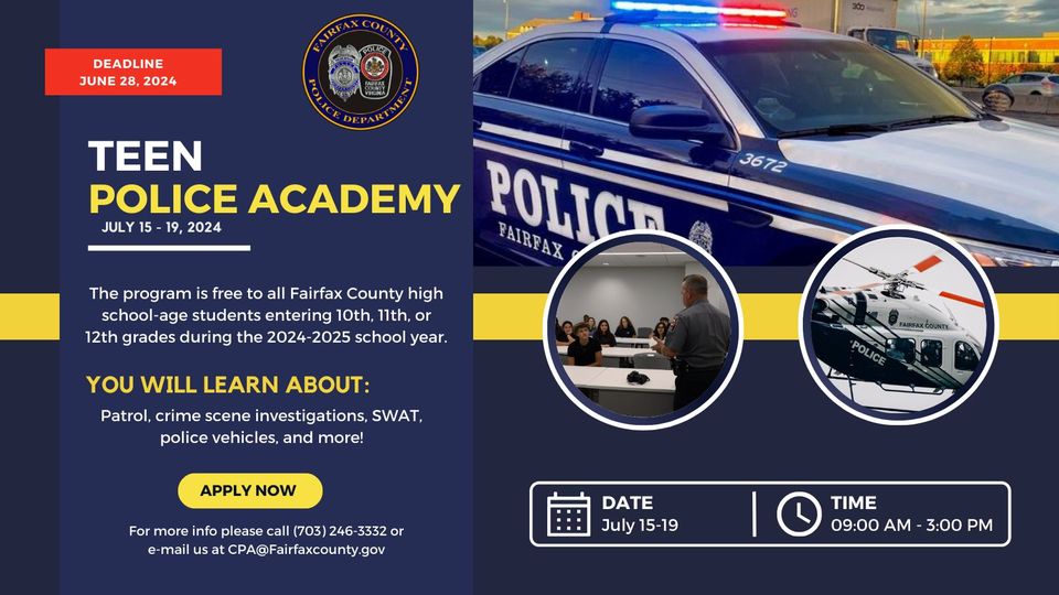 - Deadline June 28: Teen Police Academy Applications