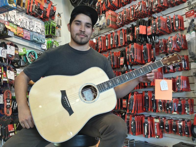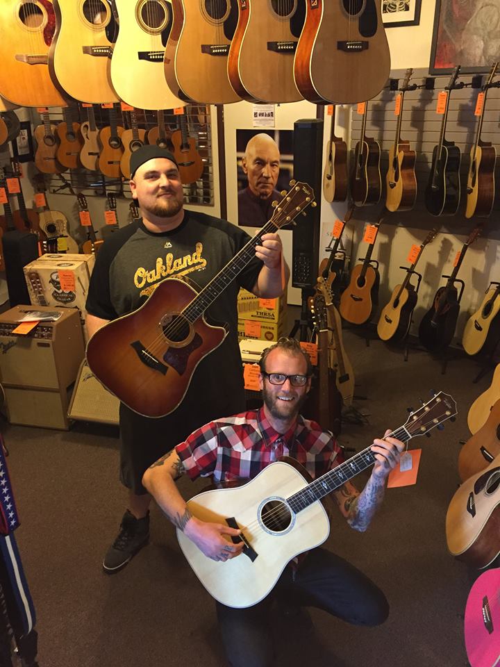 (left) Ben with a beautiful 1989 Taylor 810C with LR BAGGS Dual Source pickup and case $1,500, (right) Jared with a 2006 Taylor 810C Custom w/ adirondack spruce top and Brazilian back and sides w/case $2999
