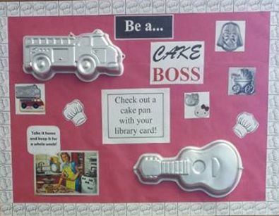 Come check out our collection of cake pans available to check out of the library.