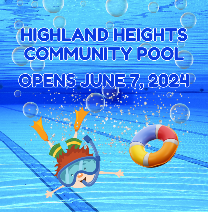 The Highland Heights Community Pool opens on Friday, June 7, 2024 at 12:30 p.m. (weather permitting).