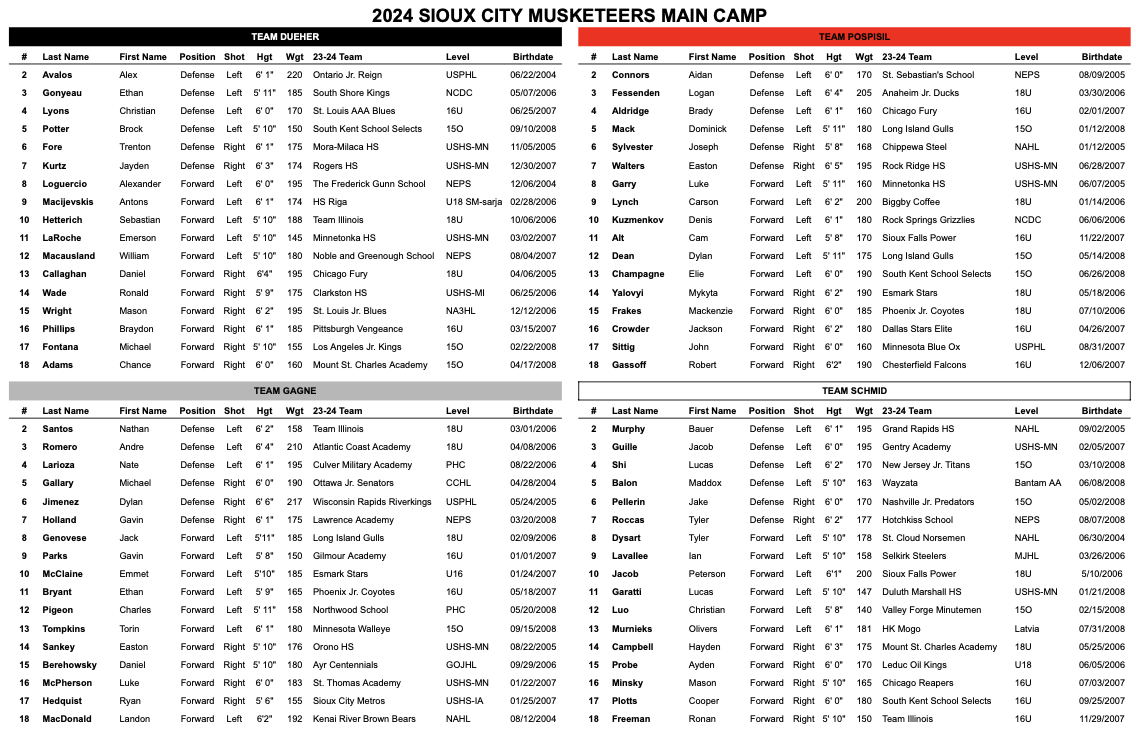 As always if you have questions or concerns please feel free to reach out and ask by emailing Connor Ryan at connor@musketeershockey.com. And welcome to Sioux City!