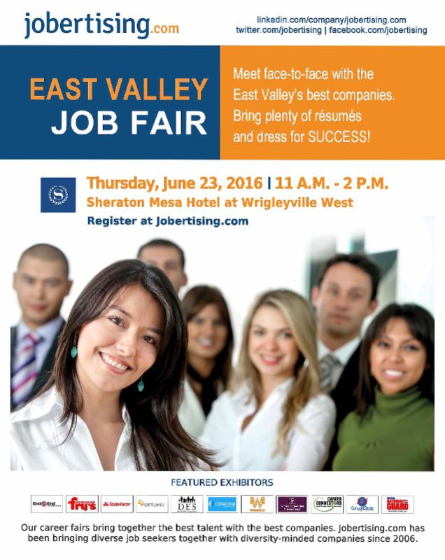 Find a great job in Mesa this Thursday, June 23rd, 2016 from 11am - 2pm at the Sheraton Mesa Hotel at Wrigleyville West located at 860 N. Riverview, Mesa, Arizona, 85201. This job fair is open to the general public and there is no cost to attend. Make sure to bring plenty of resumes and Dress for an Interview! Click here to view a full list of exhibitors.